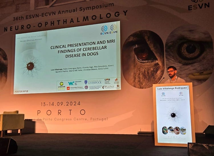 Luis’ research aims to evaluate the clinical presentation and MRI findings in dogs with cerebellar disease, correlating clinical signs with lesion location. His poster presents the preliminary results of this research, where clinical data of 102 dogs with cerebellar neurolocalisation and cerebellar lesions that presented to four referral hospitals were reviewed.