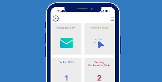 The new CVS app will enable locums to view all available shifts, negotiate shift rates, book shifts, message practices and submit invoices for payment – all in one place.