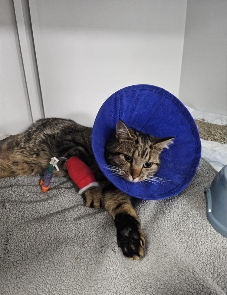 Beautiful tabby cat gets complex pelvic injuries after road traffic accident