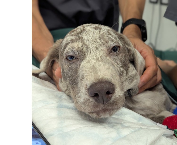 A three‑month‑old Labrador‑cross puppy from Saltash has had a lucky escape after swallowing the entire silicon head of a spatula during a moment of kitchen mischief – prompting an urgent trip to Bristol Vet Specialists (BVS) for specialist treatment.