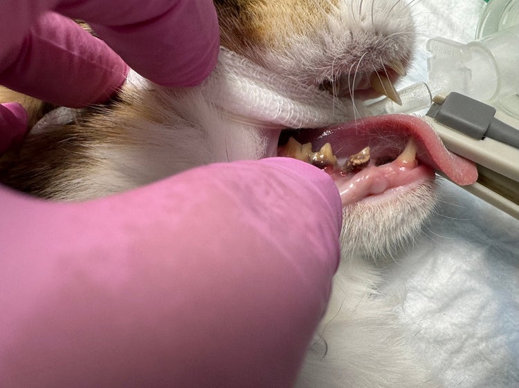 During physical examination, clinicians noted severe periodontal disease affecting multiple teeth, accompanied by marked calculus, gingival recession and oral discomfort. While further gastrointestinal diagnostics - including faecal analysis, endoscopy or biopsy - were planned, the veterinary team prioritised treatment of the advanced dental disease due to its severity and potential impact on systemic health.